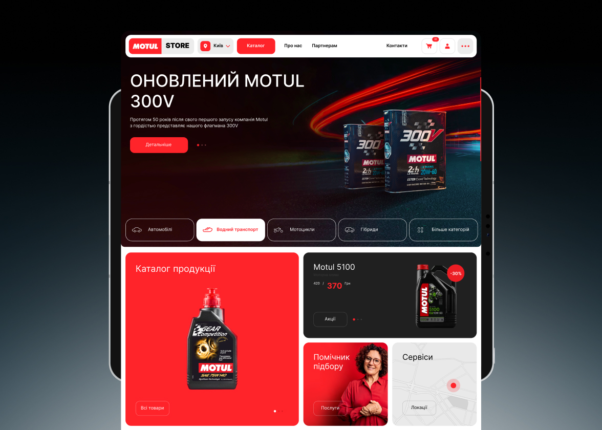 Large E-Commerce website of the Fracne brand for vehicle maintenance Motul.