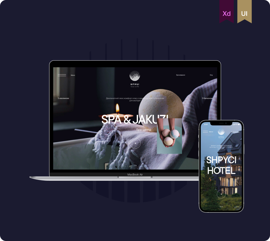 Website for a Spa hotel in the ski resort Bukovel located in Eastern Europe with a focus on high quality services and attention to detail in architecture.