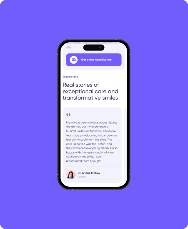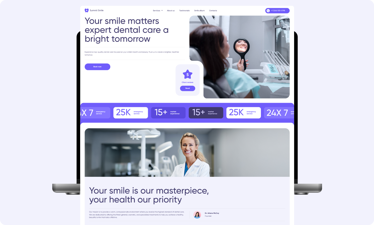 Website design and development for Summit Smile Studio is a boutique dental clinic located in the heart of Seattle and London, led by Dr. Arlene McCoy. The practice is known for its cutting-edge approach to cosmetic and restorative dentistry, blending advanced technology with warm, personalised care. The clinic serves a diverse client base — from downtown professionals to out-of-town patients seeking full smile transformations.